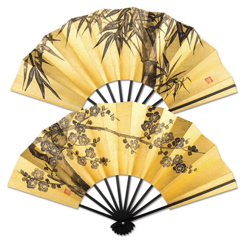 濃淡の美しい絵柄が目を引く、華やかなインテリアアイテムです。日本の伝統的な扇子をモダンにアレンジしたデザインで、高級感漂う素材と仕上がりにこだわりました。梅と竹のシンボルが縁起のいい洗練されたデザインは、お部屋のアクセントとしてもおすすめです。